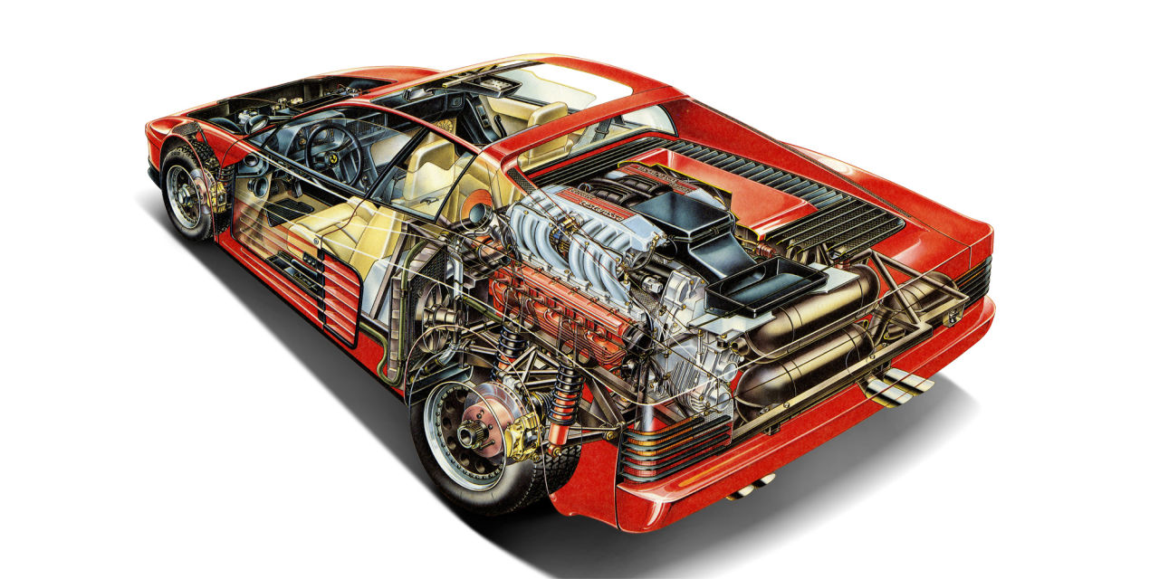 "Enzo Ferrari famously said that aerodynamics were for people who couldn't build engines. Someone certainly saw which way the wind was blowing; the crazy mirrors and sharp edges on the Testarossa's flanks are a nod to that era's fleeting, jittery vibe. But the car's engine and chassis were designed with forever in mind."